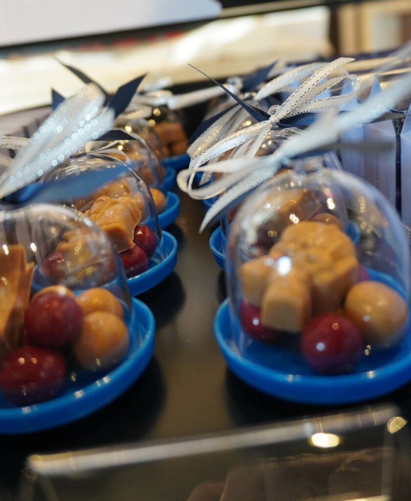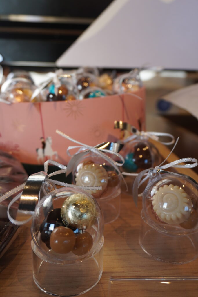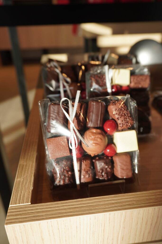 De plus, un espace vrac est à disposition de la clientèle qui pourra composer son assortiment de confiseries, d’écrire un message avec des carrés de chocolat ou encore de se procurer des bouquets personnalisables depuis l’atelier…