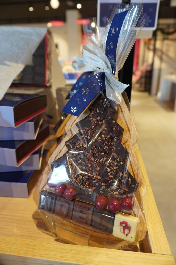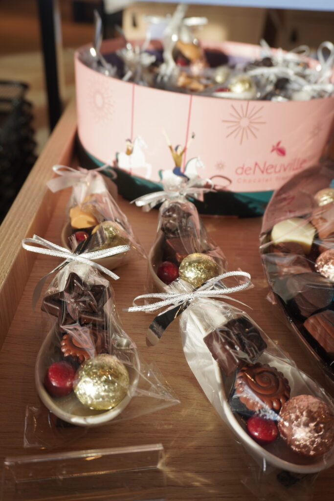 On y découvre aussi des assortiments de chocolat avec des champignons, des hérissons et pour un instant cocooning à la maison des cuillères de chocolat à faire fondre, des macarons….