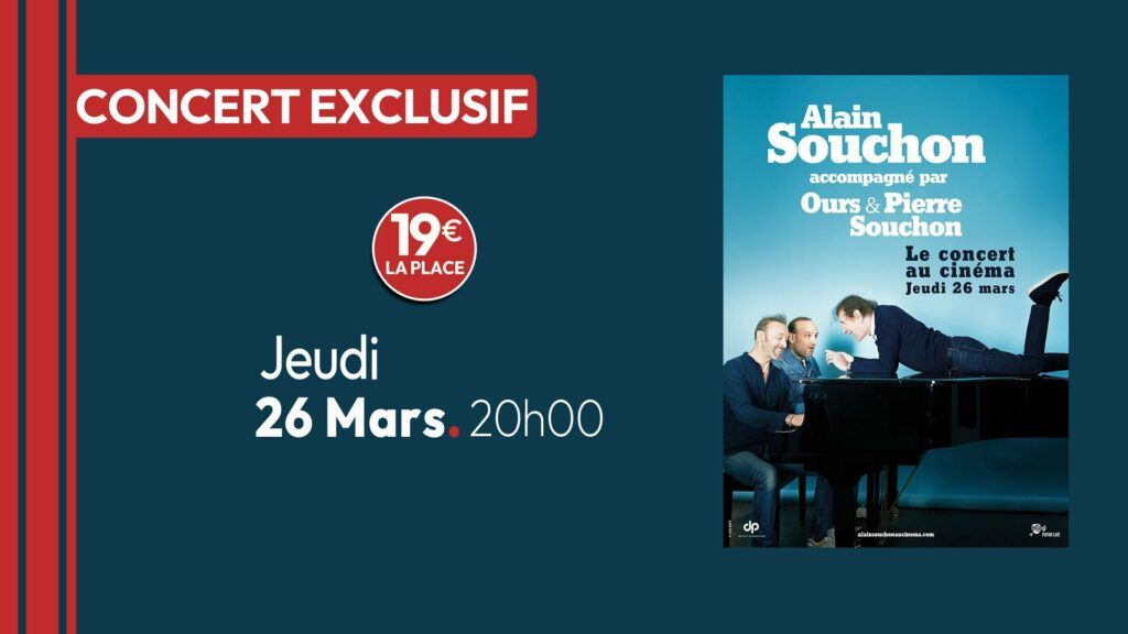 - Alain Souchon – Le concert au cinéma accompagné par Ours et Pierre Souchon le jeudi 26 mars à 20h