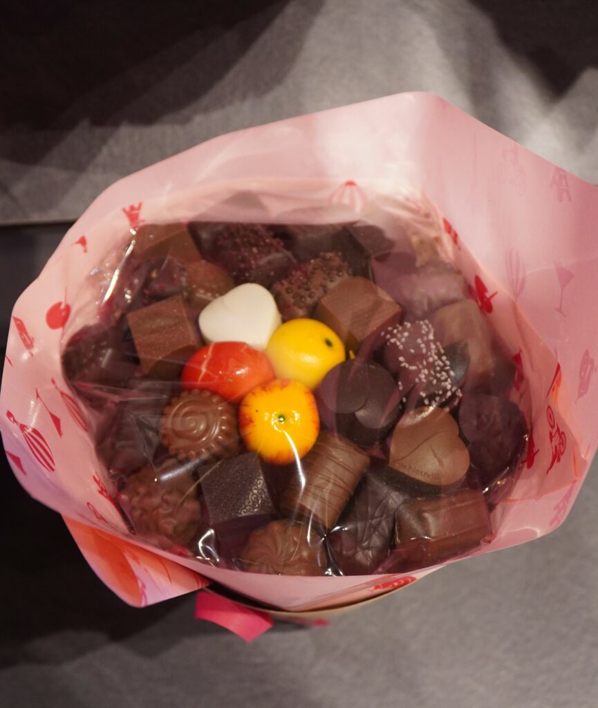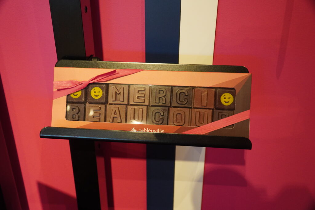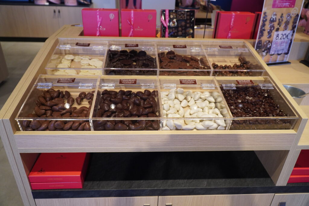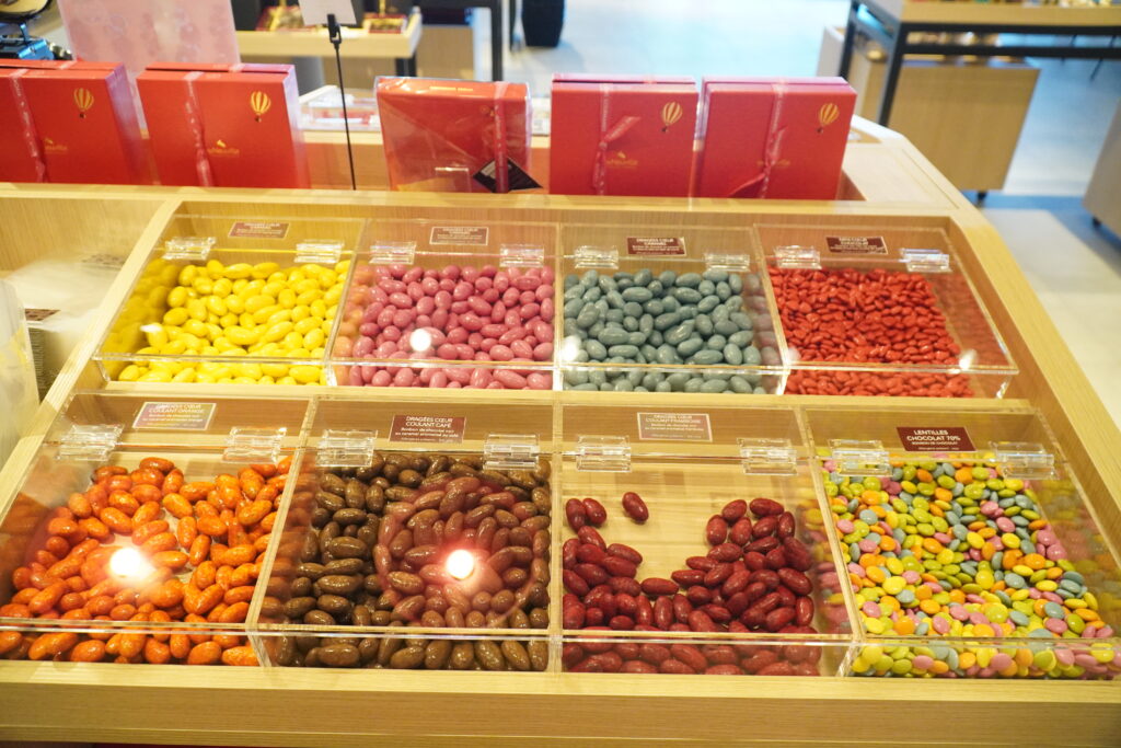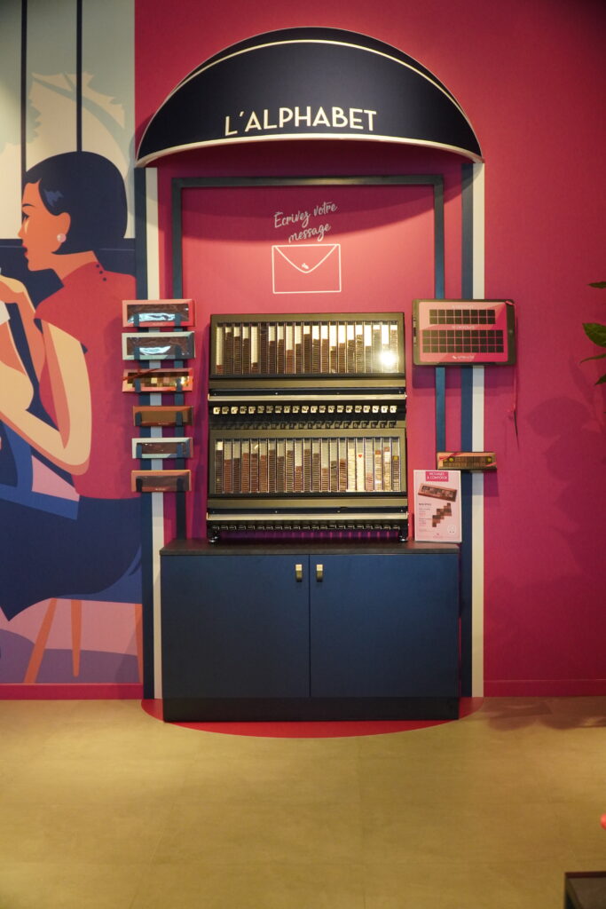 De plus, un espace vrac est à disposition de la clientèle qui pourra composer son assortiment de confiseries, d’écrire un message avec des carrés de chocolat ou encore de se procurer des bouquets personnalisables depuis l’atelier…