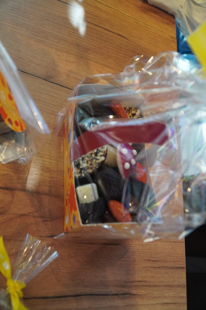 On y découvre aussi des assortiments de chocolat avec des champignons, des hérissons et pour un instant cocooning à la maison des cuillères de chocolat à faire fondre, des macarons….